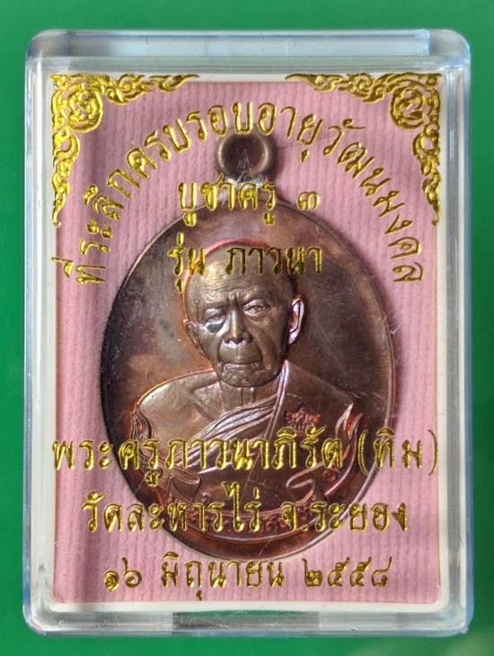 เหรียญเจริญพรหลวงปู่ทิม เนื้อทองแดงผิวรุ้ง "รุ่นเจริญพรบน-ล่าง" วัดละหารไร่ ปี 2558 #2 |
