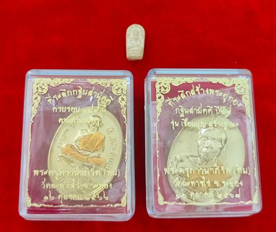 /// โละๆๆเคลียร์หน้าพระที่บ้านครับ ต่ำกว่าทุน /// 2 องค์ @ ราคาเบาๆๆ ถูกกว่าราคาหน้าตู้ที่วัดครับ เหรียญไข่ เนื้อทองทิพย์ ลงยา ปี๖๖ พร้อมกล่องเดิม พระขุนแผน ปัดทอง รุ่นพรายมหานิยม ปี๖๗ พร้อมกล่องเดิม |