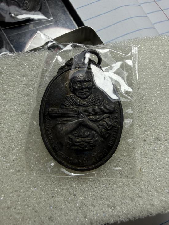 เหรียญหลวงปู่จันทร์ วัดท่าเกวียน ปี 2514 เนื้อทองแดงรมดำ หลวงปู่ทิม วัดละหารไร่ ปลุกเสก |