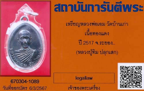 พระพุทธรัศมี วัดเกาะกลอย เนื้อผงเคลือบแล็กเกอร์ ปี 2514 จ.ระยอง (หลวงปู่ทิม ปลุกเสก) มาพร้อมบัตรรับรองพระแท้การันตีพระ |