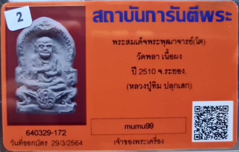 พระสมเด็จนักเลงโต พิมพ์ใหญ่ หลวงพ่อทาบ ปี2505 วัดกระบกขึ้นผึ้ง จ.ระยอง พร้อมบัตรการันตีพระ |