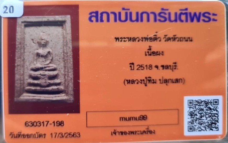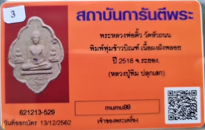 พระหลวงพ่อติ้ว วัดหัวถนน พิมพ์พุ่มข้าวบิณฑ์เนื้อผงฝังพลอย หลวงปู่ทิมเสก พิมพ์นี้หายาก |