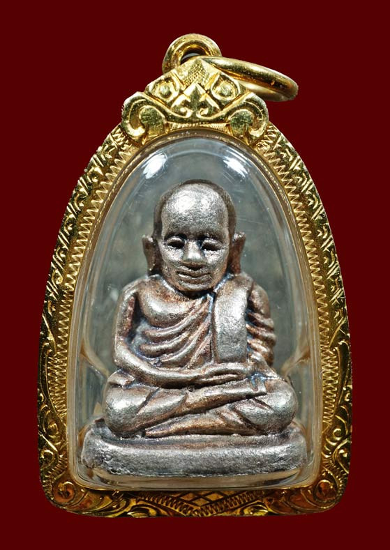 รูปหล่อหลวงพ่อเงิน ช้างคู่ เนื้อเงิน พิมพ์เล็ก ปี 2526 เลี่ยมทอง |