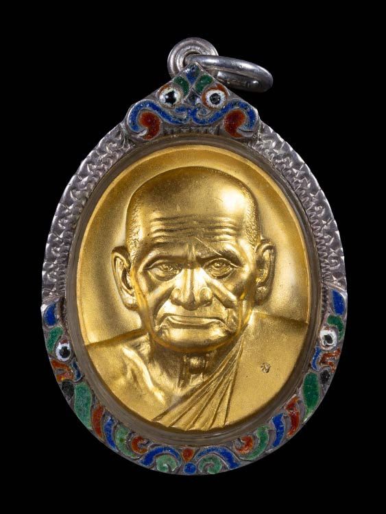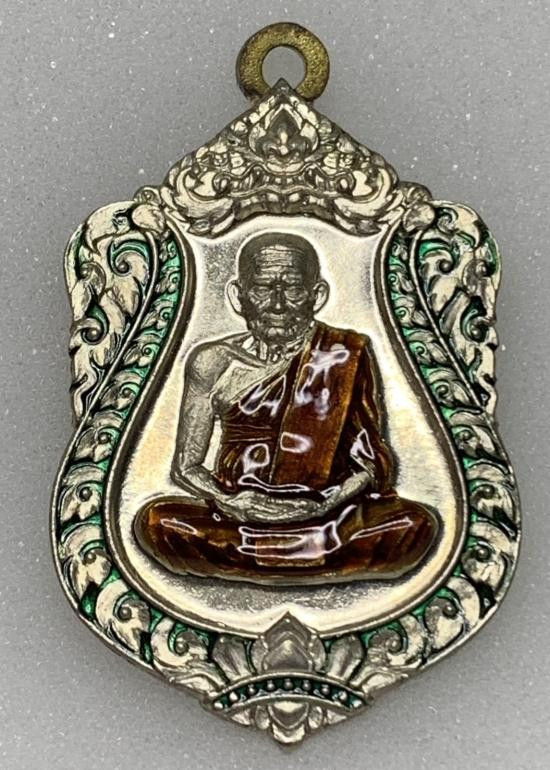 เหรียญหลวงพ่อเงิน พุทธโชติ วัดบางคลาน รุ่นฉลองเลื่อนสมณศักดิ์ 111 ปี ซึ่งจัดสร้างในปี พ.ศ. 2557 เนื้ออัลปาก้าลงยา |