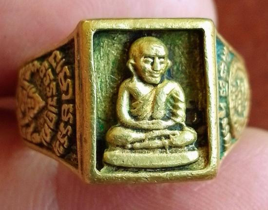 แหวนหลวงพ่อเงิน วัดบางคลาน จ.พิจิตร รุ่นช้างคู่ ปี 26 เนื้อทองผสม ยันต์น้ำเต้าด้านในแหวน |