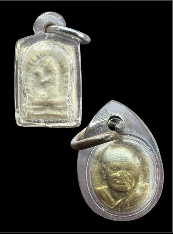 เคาะเดียวแดง เหรียญจอบหลวงพ่อเงิน วัดบางคลาน หลัง หลวงพ่อเงิน วัดดอนยายหอม 2เหรียญ |
