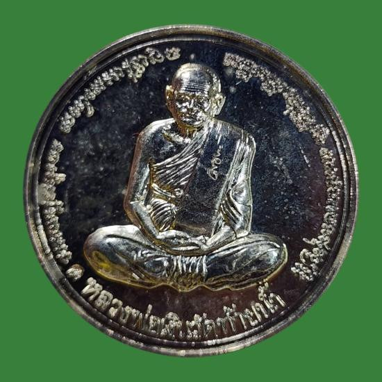 เหรียญจอบใหญ่ หลวงพ่อเงิน ปี 56 เนื้อบอร์นชุบ 3 K พิมพ์ใหญ่ กล่องเดิมซีลเดิม หมายเลขสวย 129 ครับ |