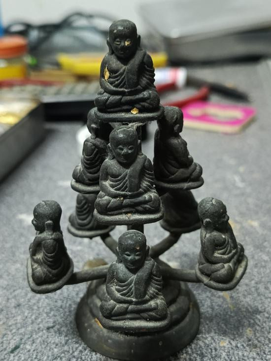 ยกช่อ 9 องค์ พระรูปหล่อหลวงพ่อเงิน วัดบางคลาน ผิวหิ้งเก่า คาบเบ้ายังอยู่ ยกช่อ 9 องค์สูง 10 ซม |