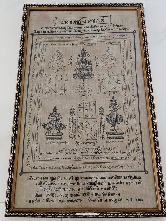 ผ้ายันต์ท้าวเวสสุวรรณ รุ่นแรก หลวงพ่ออิฏฐ์ วัดจุฬามณี ปี 2532 พร้อมกรอบ |
