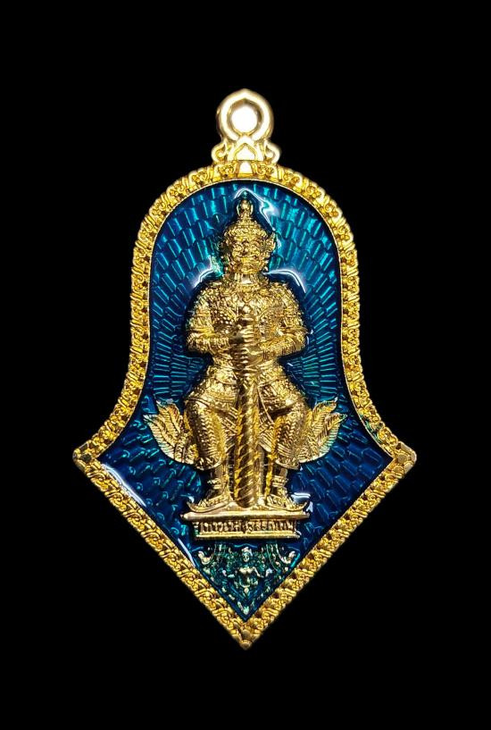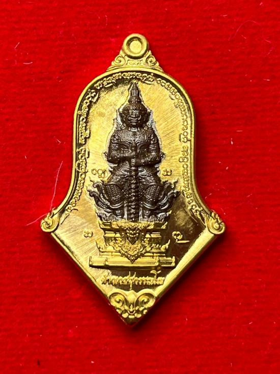 เหรียญ ท้าวเวสสุวรรณ หลวงพ่ออิฏฐ์ วัดจุฬามณี จ.สมุทรสงคราม ปี 2563 พิมพ์ใบมะขาม เนื้อกะไหล่ทอง |