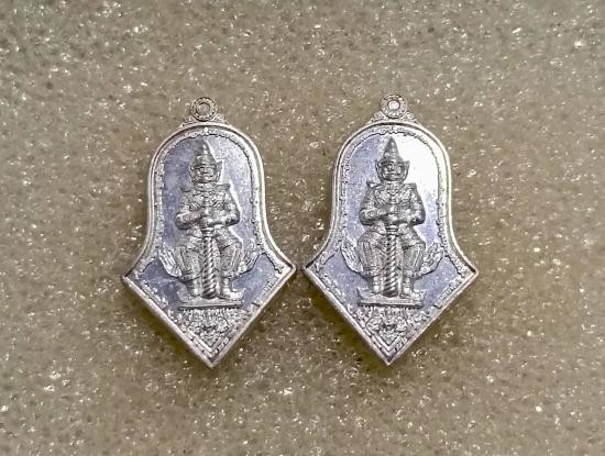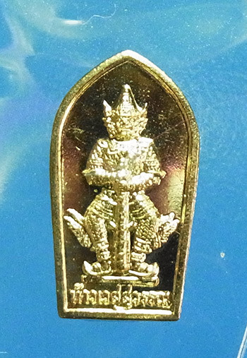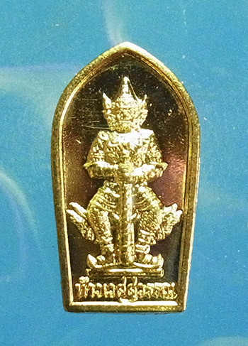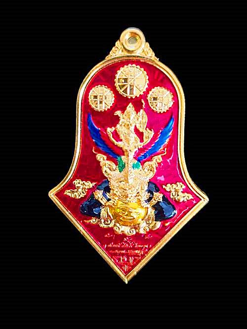 เหรียญท้าวเวสสุวรรณโณฯ รุ่นเจริญทรัพย์ วัดจุฬามณี เนื้อเงินลงยาแดงหน้ากากทองคำ พิมพ์เล็ก เลข ๑๙๑ |
