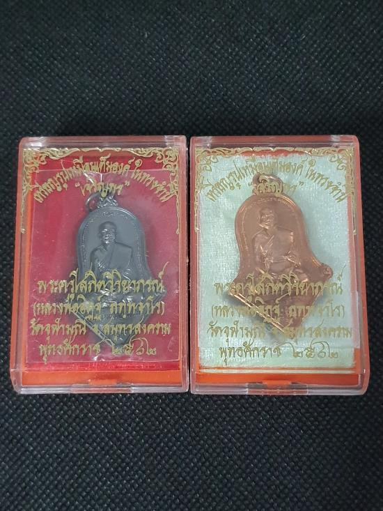 เหรียญทรงจำปี รูปเหมือนเต็มองค์ เนื้อทองแดงขัดเงา รุ่นเจริญพร หลวงพ่ออิฏฐ์ วัดจุฬามณี ซีลเดิมลุ้นเลขสวย 2 เหรียญ |