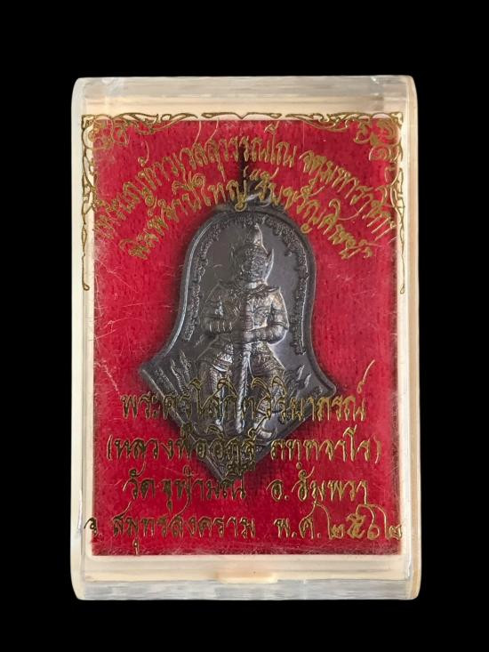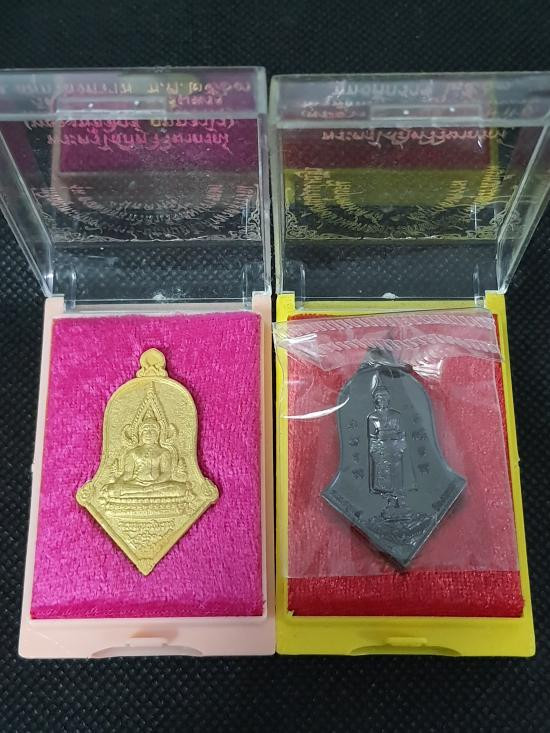 ***เหรียญหล่อทรงจำปี รุ่น "ปลดหนี้ พุทธศิลป์" พระพุทธชินราช ประทับหลังท้าวเวสสุวรรณโณ หลวงพ่ออิฏฐ์ วัดจุฬามณี เนื้อชนวนชุบ 2 กษัตริย์ (แยกชุดของขวัญ) พิมพ์ใหญ่ หมายเลข 2189 พร้อมเลี่ยมกรอบเงินลงยา และ |