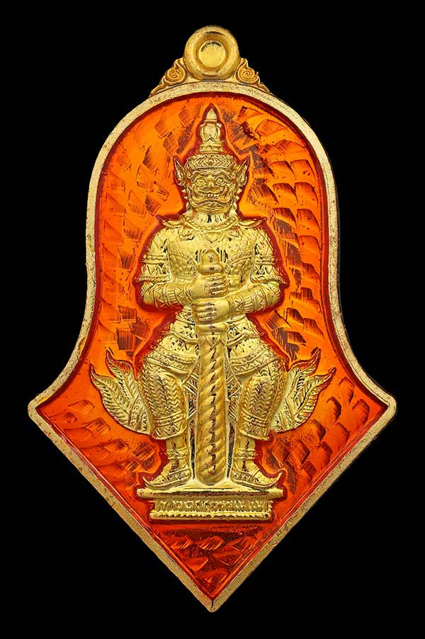 เหรียญท้าวเวสสุวรรณ ทราวดีศรีสุพรรณภูมิ พิมพ์จำปีเล็ก มหาชนวนกาหลั่ยทองลงยาส้ม |
