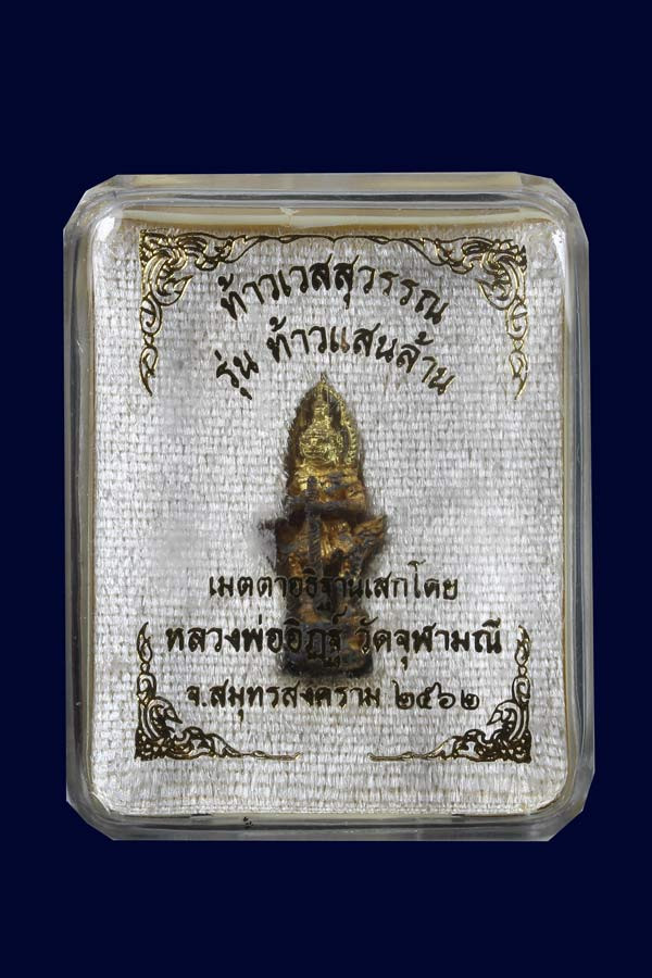 ท้าวเวสสุวรรณ รุ่นท้าวแสนล้าน หลวงพ่ออิฏฐ์ปลุกเสก3วาระ เนื้อ ทองทิพย์ อุดผงยาจินดามณี สวยงามพร้อมกล่อง |