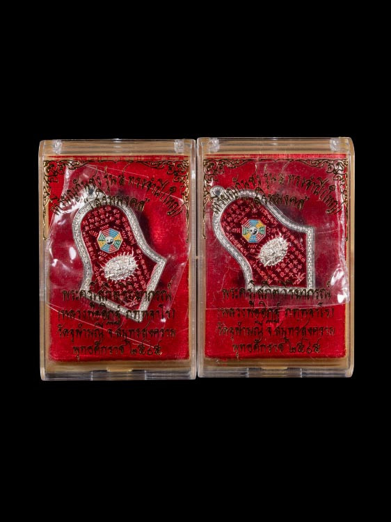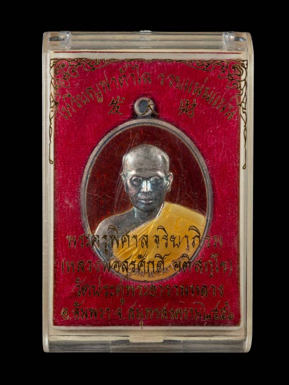 วัดใจไปเลย ล็อกเก็ตพ่อครูฤาษีเวสสนุญาณ ที่รฤกบูชาครู 2566 หลวงพ่อพระมหาสุรศักดิ์ วัดประดู่ ฉากแดงหลังอุดผงฝังเหรียญเม็ดแตง ตะกรุด เส้นเกศา |