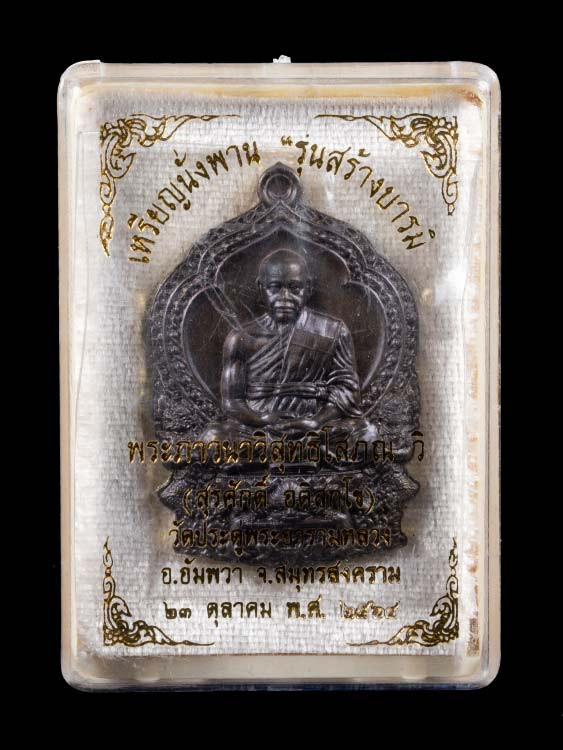 เหรียญพระมหาสุรศักดิ์ วัดประดู่พระอารามหลวง จ.สมุทรสงคราม รุ่นเศรษฐีอัมพวา เนื้อทองแดง พร้อมซองเดิมจากวัด |