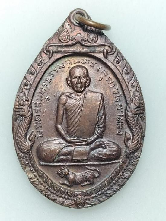 เหรียญเสือหมอบ หลวงพ่อสุด วัดกาหลง ปี 2519 เนื้อทองแดง (บล็อกนิยม) จีวรแลบ |