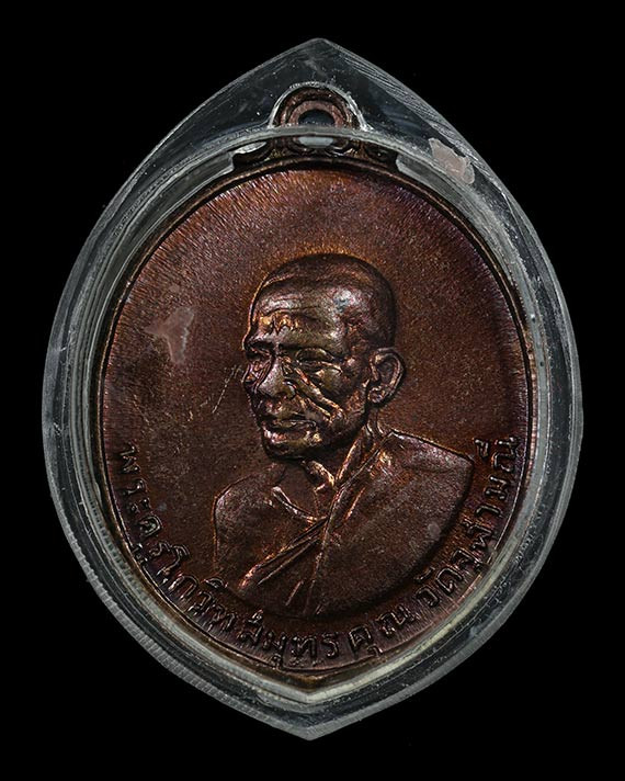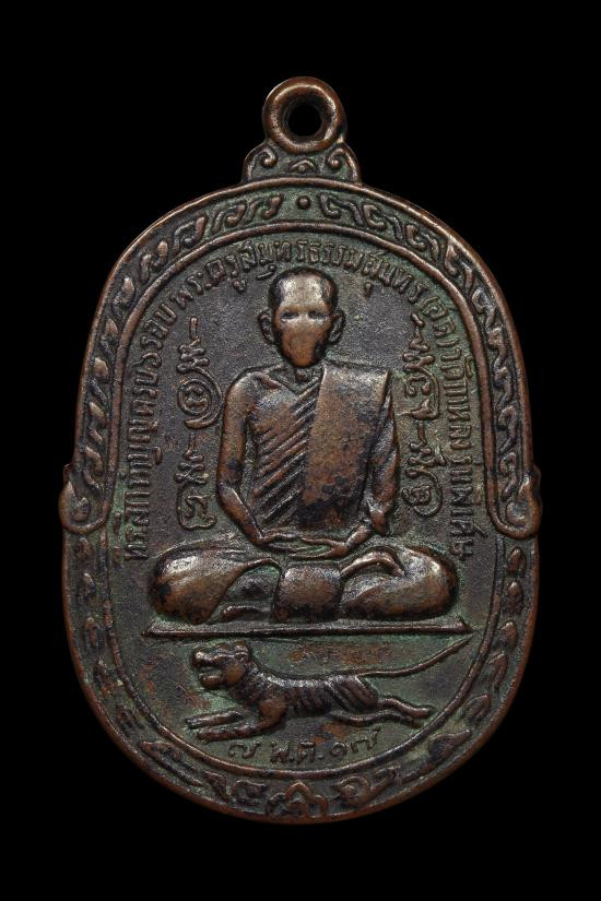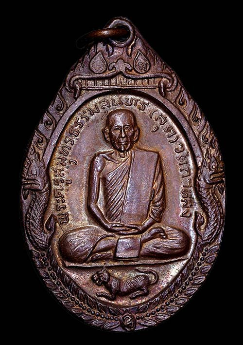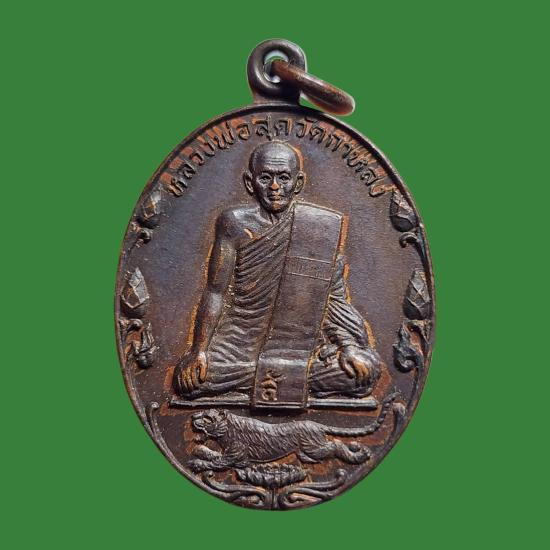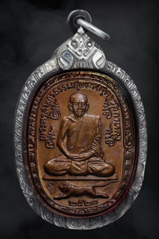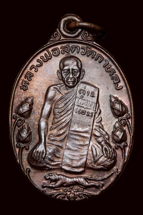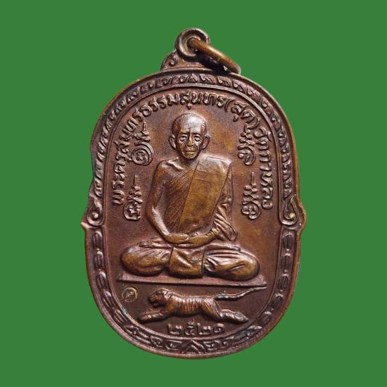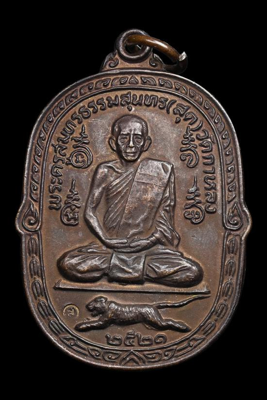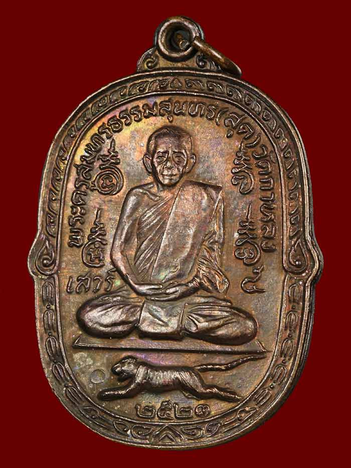 เหรียญ หลวงพ่อสุด วัดกาหลง จ.สมุทรสาคร ปี 2521 รุ่นเสือเผ่น เนื้อทองแดง พร้อมเลี่ยมทองสวยๆ |