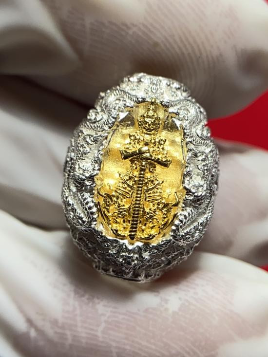 ท้าวเวสสุวรรณ หลวงพ่ออิฏฐ์ วัดจุฬามณี พิมพ์เข่าย่อย้อนยุค เนื้อกเะไหล่เงิน+ทอง ปี 2563 (กล่องเดิม) |
