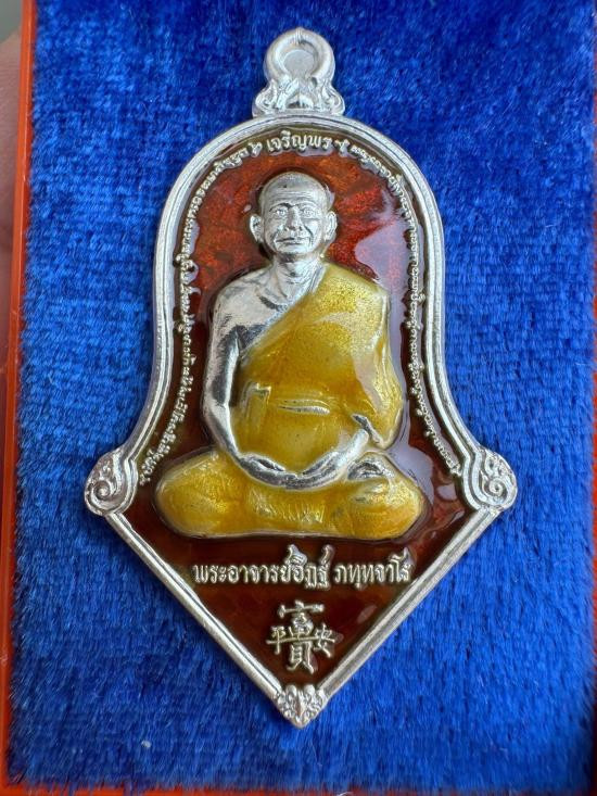 เหรียญรุ่นแรก รูปเหมือนทรงจำปี รุ่นเจริญพร หลวงพ่ออิฏฐ์ วัดจุฬามณี เนื้อเงินลงยาแดง |