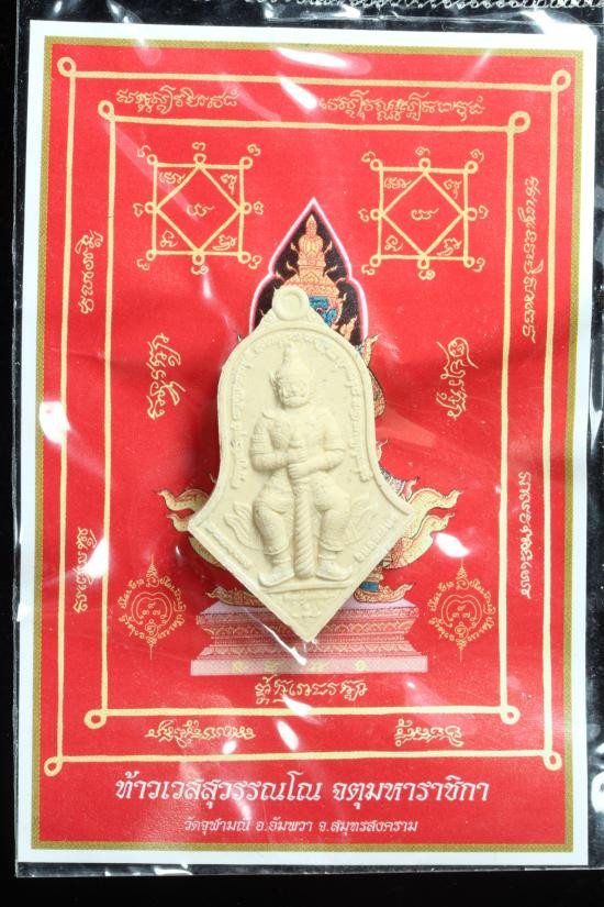 (วัดใจ) ท้าวเวสสุวรรณ เนื้อผงส้มป่อย พิมพ์กลาง หลวงพ่ออิฏฐ์ วัดจุฬามณี จ.สมุทรสงคราม มีเจิมแดง จารดินสอ หน้า-หลัง |
