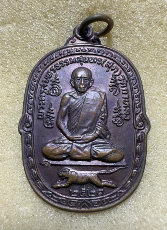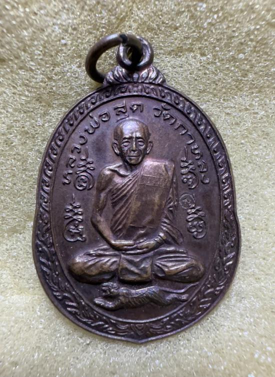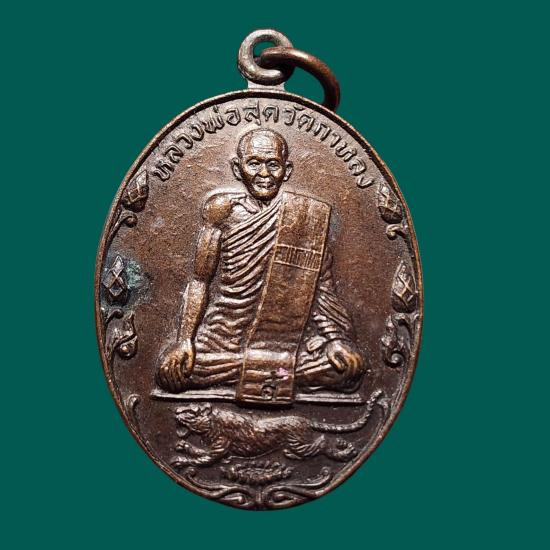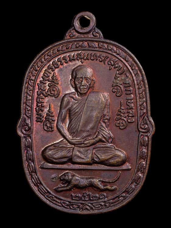 เหรียญหลวงพ่อสุด วัดกาหลง รุ่นเสือเผ่น พิมพ์เสือหางตรง เนื้อทองแดง ปี 2521 |
