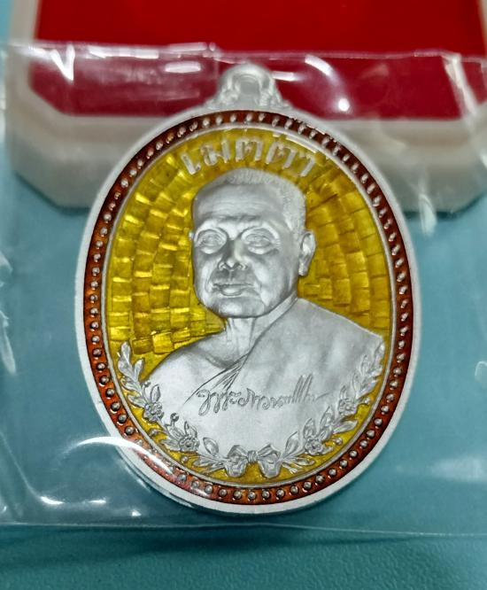 วัดใจ//เหรียญเมตตาพระมหาสุรศักดิ์ เนื้อเงินลงยาสีฟ้า พร้อมกล่อง |