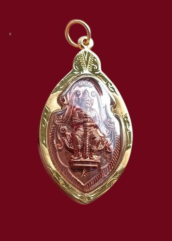 เหรียญท้าวเวสสุวรรณ หลวงพ่ออิฏฐ์ พิมพ์ใบสาเก เนื้อทองแดง ปี 59 เลี่ยมทองคำ 75% |