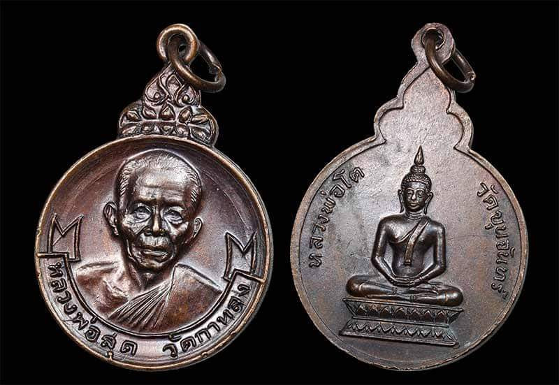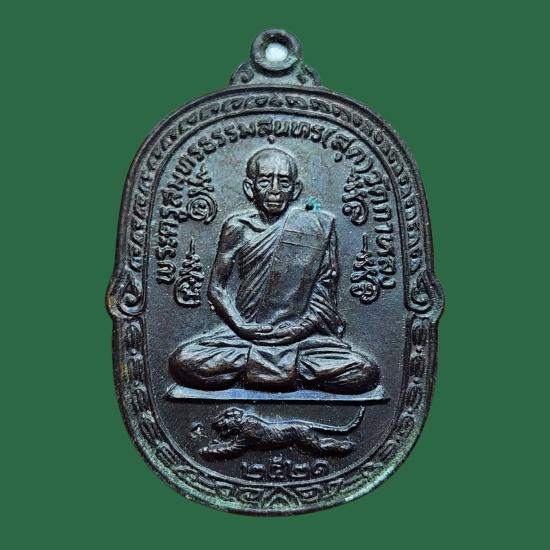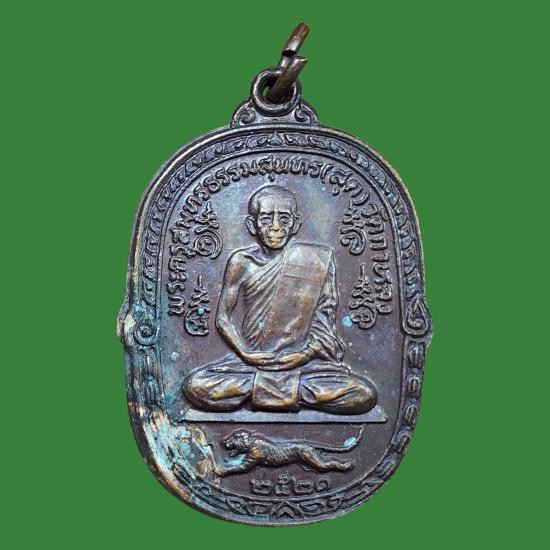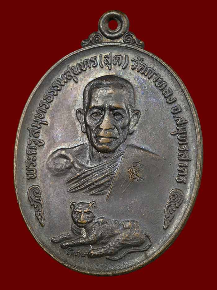 เหรียญเสือเผ่น หลวงพ่อสุด วัดกาหลง เนื้อทองแดง บล็อกวัดศาลาครืน ปี 2517 |