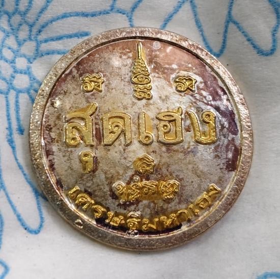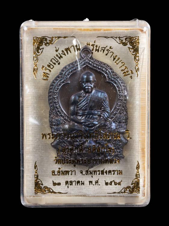 เหรียญนั่งพานสร้างบารมี พระมหาสุรศักดิ์ เนื้ออัลปาก้าซาตินมีจาร |