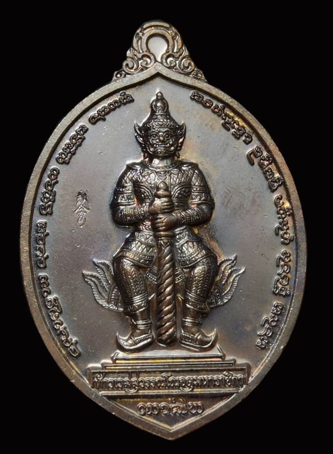 เหรียญรัตนมงคล ท้าวเวสสุวรรณโณ (หน้าเทพ ทรงจำปี 61) (ท้าวกุเวร เทพบุตร) รุ่น คู่บารมี ปี 45 พิมพ์จำปีใหญ่ เนื้อมหาชนวนรมดำ หลวงพ่ออิฎฐ์ วัดจุฬามณี |