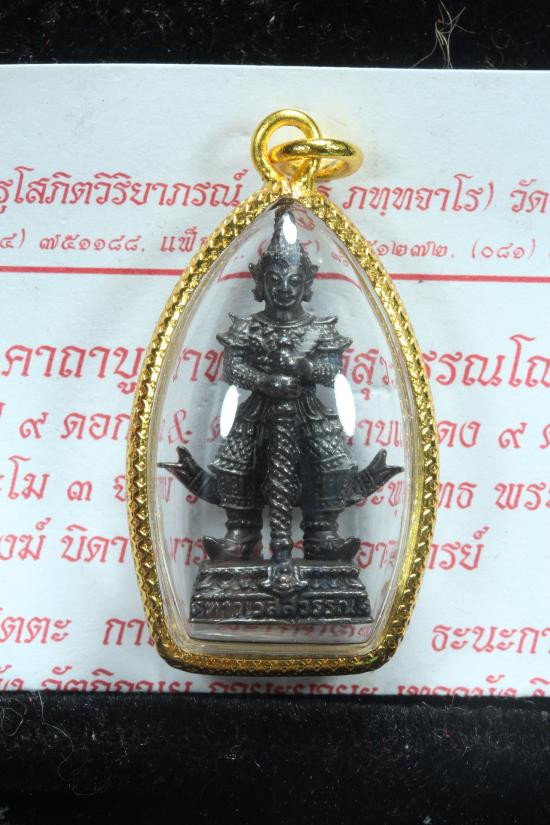 ** พร้อมเลี่ยมไมครอน วัดใจ 100 เดียว **รูปหล่อท้าวเวสสุวรรณ พิมพ์หน้ายักษ์ หลวงพ่ออิฏฐ์ วัดจุฬามณี เนื้อทองเหลือง ปี 2559 สมุทรสงคราม สภาพสวยเดิมๆไม่ผ่านการใช้ พร้อมใบคาถา//13 |