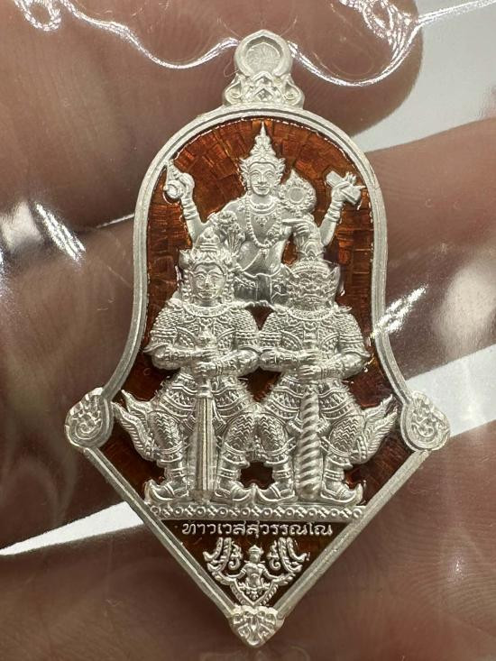 ท้าวเวสสุวรรณโณ จตุมหาราชิกา ปาง 3เทพ ปฐมพรหมจตุมหาราชิกา รุ่น ๑ มีแล้วไม่จน เนื้อเงินบริสุทธิ์ ลงยาแดง หลวงพ่ออิฏฐ์ วัดจุฬามณี จ.สมุทรสงคราม กล่องครบ |