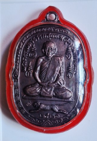 เคาะเดียวแดง เหรียญหลวงพ่อสุด วัดกาหลง เสือเผ่นเสาร์ห้า ปี 2523 ตอกโค๊ต **มีกล่อง** |