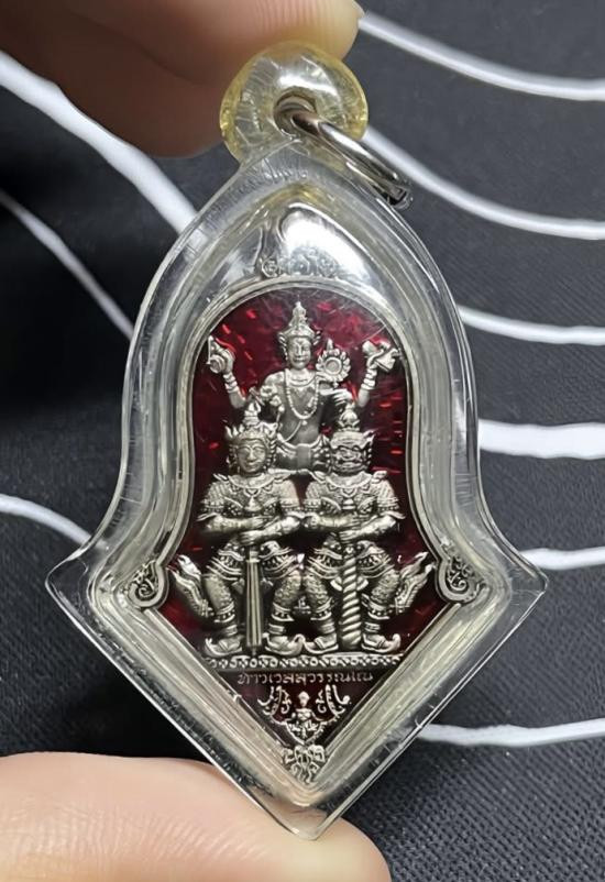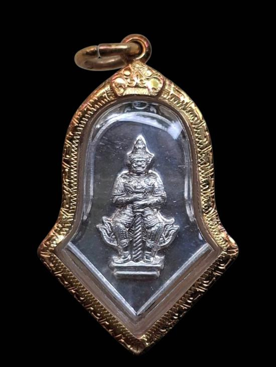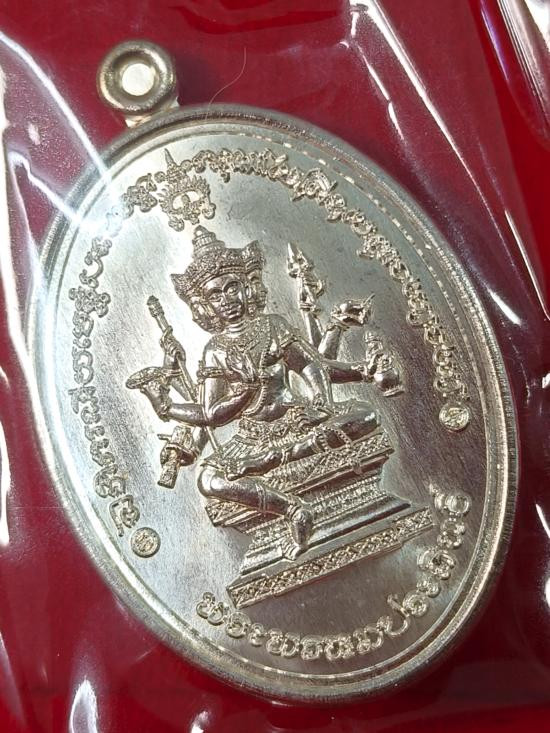 เหรียญท้าวเวสสุวรรณ พิมพ์เล็ก ปี2552 เนื้อเงิน เลี่ยมทอง บัตรสภาพสวย |