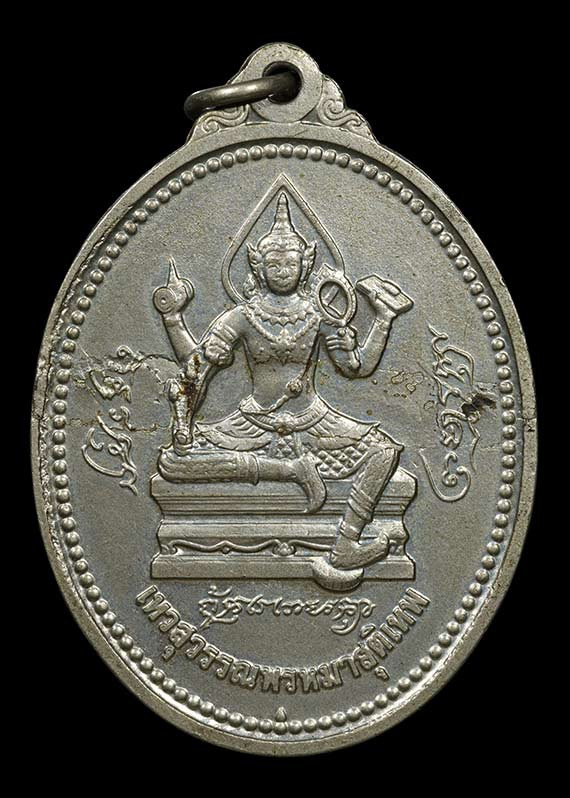 เหรียญท้าวเวสสุวรรณนั่งบัว วัดจุฬามณี ปี 2532 รุ่นแรก เนื้ออัลปาก้า สมุทรสงคราม ผิวรุ้งๆครับ |