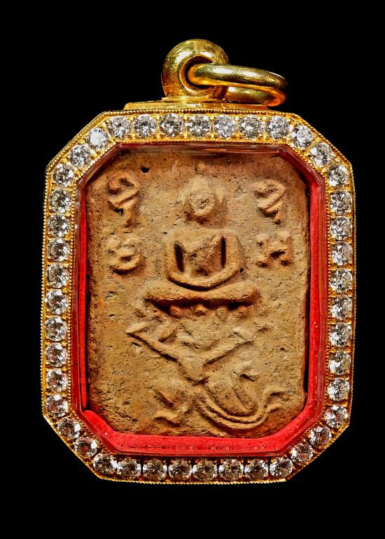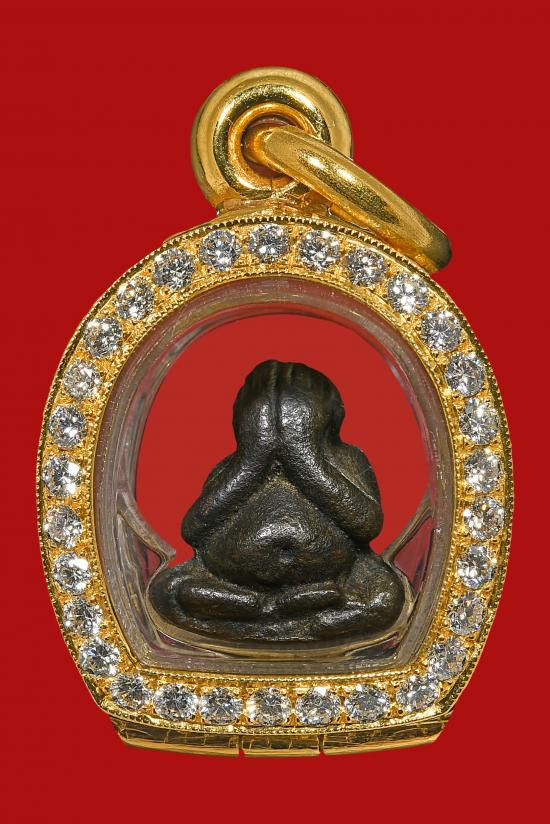 หลวงพ่อปาน วัดบางนมโค พิมพ์ทรงหนุมานใหญ่เปลือย เนื้อดินเผา พ.ศ.2460 พร้อมตลับทองฝังเพชรแท้1ใบ |