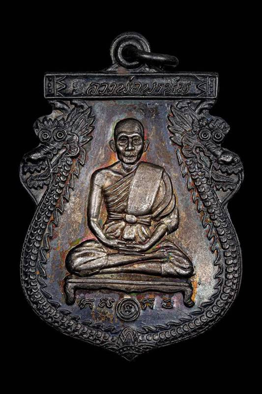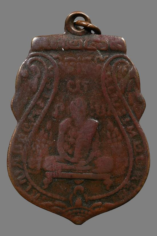 เหรียญหลวงพ่อกลั่น วัดพระญาติ รุ่นเเรก ปี2469 พิมพ์ขอเบ็ด |