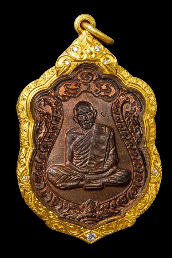 หลวงพ่อรวย วัดตะโก จ.อยุธยา หัวเลสทองคำ 1 บาท เลื่อนสมณศักดิ์ ปี 2559 เลี่ยมกรอบทองฝังเพชร พร้อมสายทองคำขึ้นมือ |