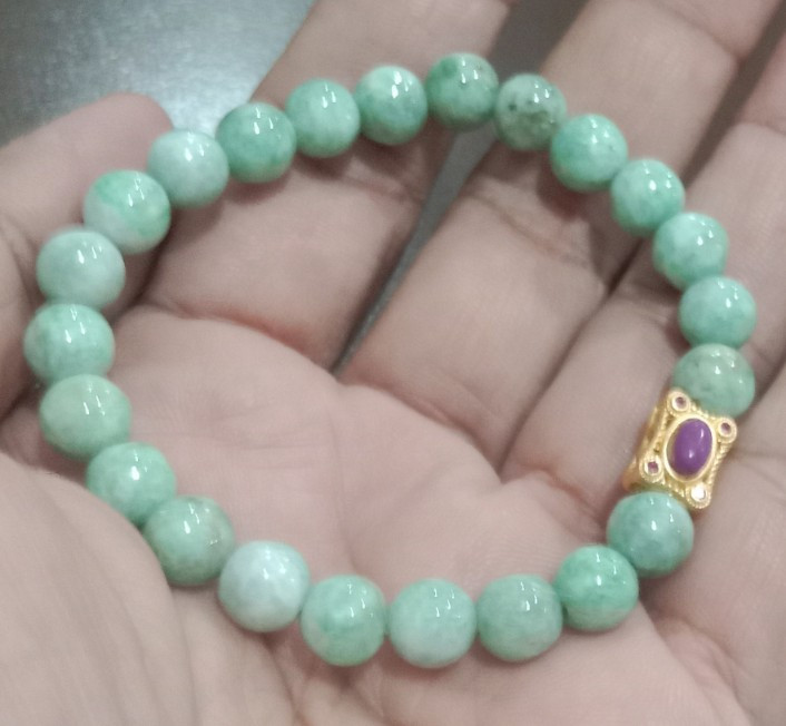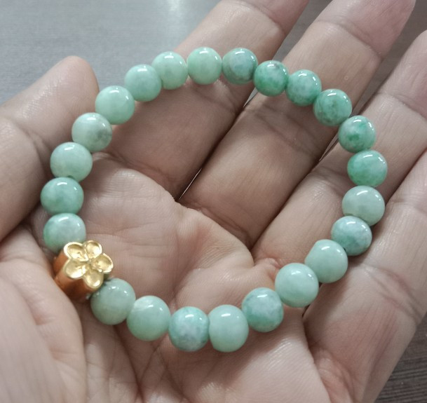 สร้อยขัอมือหยก(พม่า)/ขนาด8มิล/ร้อยยางยืดใส่สบาย/สินค้ามือ1/เส้นที่1 |