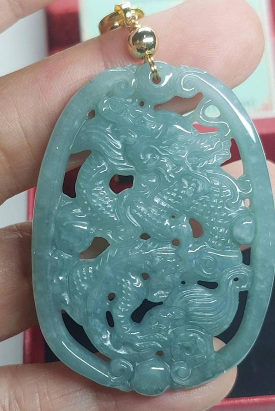 จี้มังกรหยก (มังกรนำโชค) วัดมังกรกมลาวาส (เล่งเน่ยยี) เนื้อหยกสีโอเชี่ยนบลู สวยๆ |