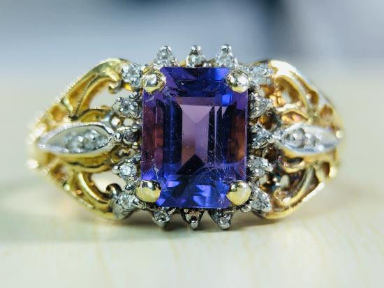 แหวนพลอยแอเมทิสต์ (Amethyst) เนื้อดิบ (ไม่ผ่านการเผา) 11.3x11.7 มม. ตัวเรือน โลหะชุบทองเก่าเก็บ |