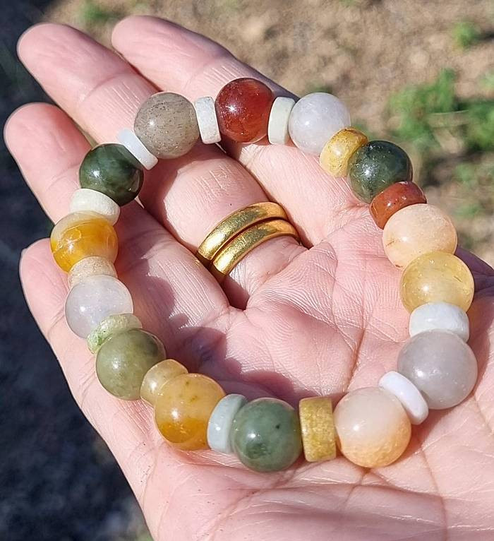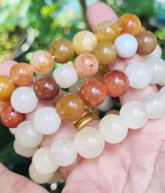 สร้อยข้อมือหยกพม่าแท้หลากสี ( ชุด 4 เส้น ) หยก 5 สี หรือ หยกฮก ลก ซิ่ว รับประกันหยกแท้ |