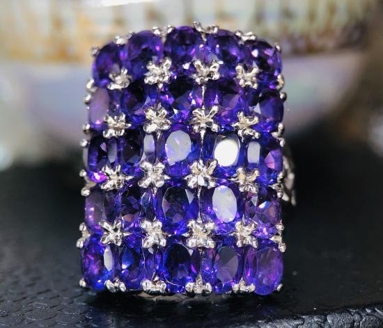 แหวนเงินแท้ 925 เต็มเปอร์เซ็น ชุบทองคำแท้ พลอยอเมทิส |