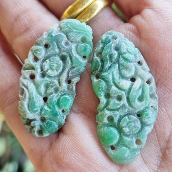 หยกเดบิส แกะลายดอกไม้และผีเสื้อ หยกสามสี สวยๆค่ะ |