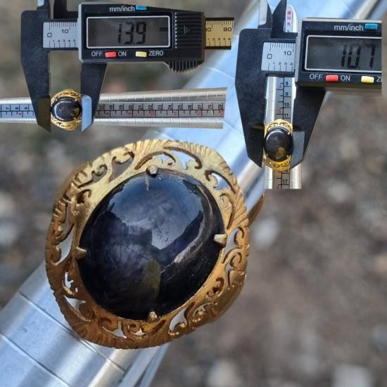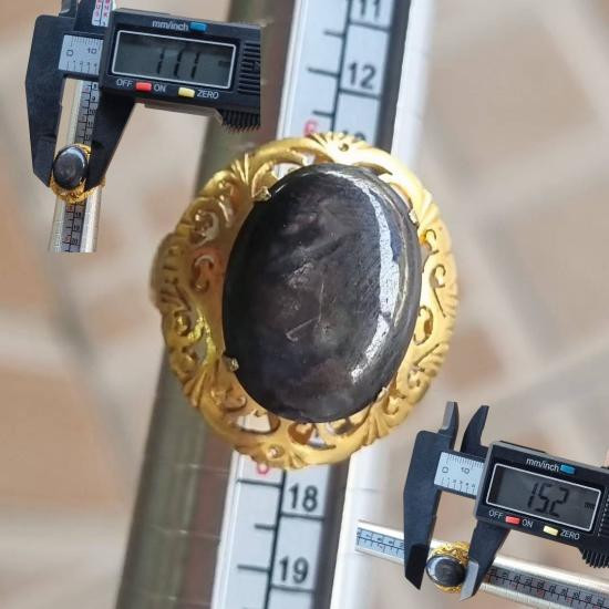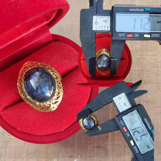 แหวนประดับพลอยสตาร์แซฟไฟร์ นิหล่า เนื้อเทียนแบบดิบ (ไม่ผ่านการเผา) ฉลุลายแบบโบราณแบบหัวมอญ |