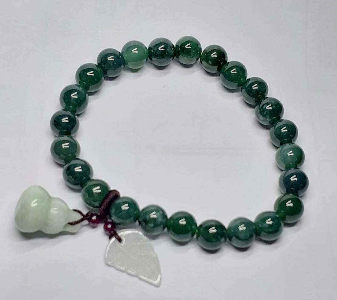 ***วัดใจ***สร้อยข้อมือ หยกจักรพรรดิ์ พร้อมจี้น้ำเต้าดูดทรัพย์ เม็ด 8 มิล สวยๆ |