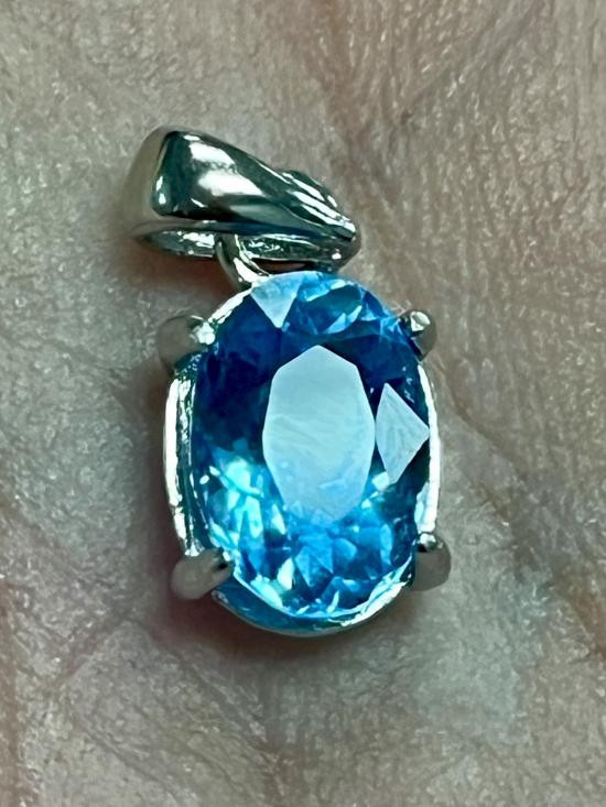 จี้เงินรูปไข่ ประดับพลอยโทแพช สีฟ้า Blue Topaz ขนาด 8x6 mm |