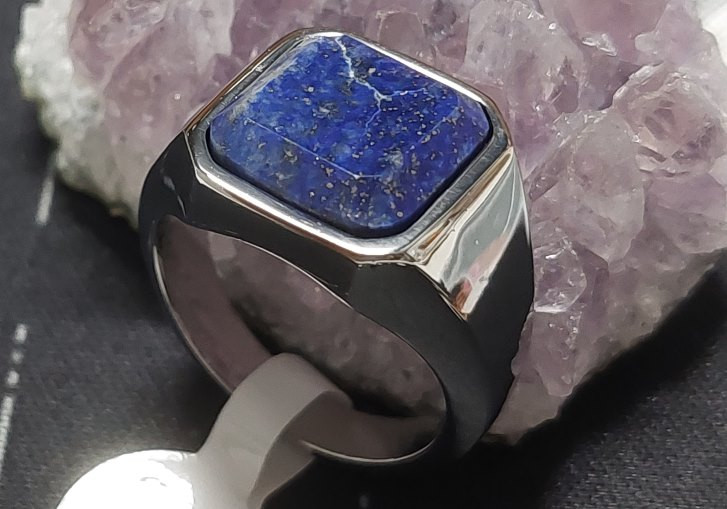 แหวนหัวลาพิสลาซูลี ตัวเรือนแหวนเป็นสแตนเลสขัดเงาแข็งแรงทนทาน ขนาดแหวนเบอร์10 |